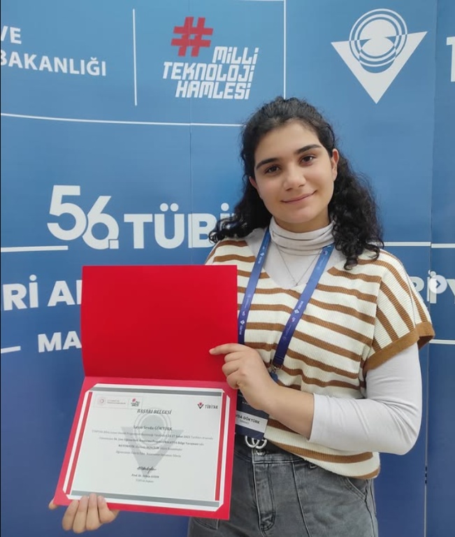 TÜBİTAK 2204-A Lise Öğrencileri Araştırma Projeleri kapsamında Malatya ilinde gerçekleştirilen bölge sergisine katılma hakkı kazanan öğrencimiz Sevda GÖKTÜRK, matematik kategorisinde katıldığı projeyle 2.lik ödülü kazanmıştır.